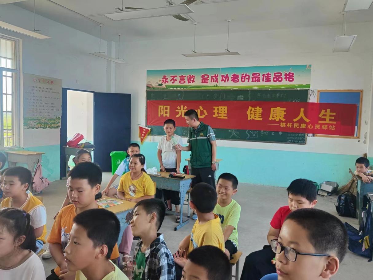 讲座结束之后,棋杆民康心灵驿站负责人陶兵还主动跟小学生们进行了交谈,进一步了解他们的心理健康状况,及时排查了学生们的心理健康问题,并对一些患有心理健康的学生进行了细致的心理疏导。学校老师和校领导也对棋杆民康心灵驿站工作人员表示了感谢,“多谢你们不辞辛苦,远道而来,为孩子们进行心理健康教育。也感谢你们对偏远地区孩子们的关注和爱护。在后续教学工作中,我们也将加强对心理健康教育的重视,密切关注孩子们的心理健康状态,保证所有学生都保持阳光、健康、乐观的心理状态。”棋杆民康心灵驿站负责人陶兵坦然表示道:“人大代表是一份使命,更是一份职责;教育是国家的命脉,也是国家未来发展的基石。在青少年心理教育问题上,作为人大代表,我们有责任和义务协助学校解决青少年心理教育问题,为教育事业发展尽一份力量,践行人大代表的使命!”