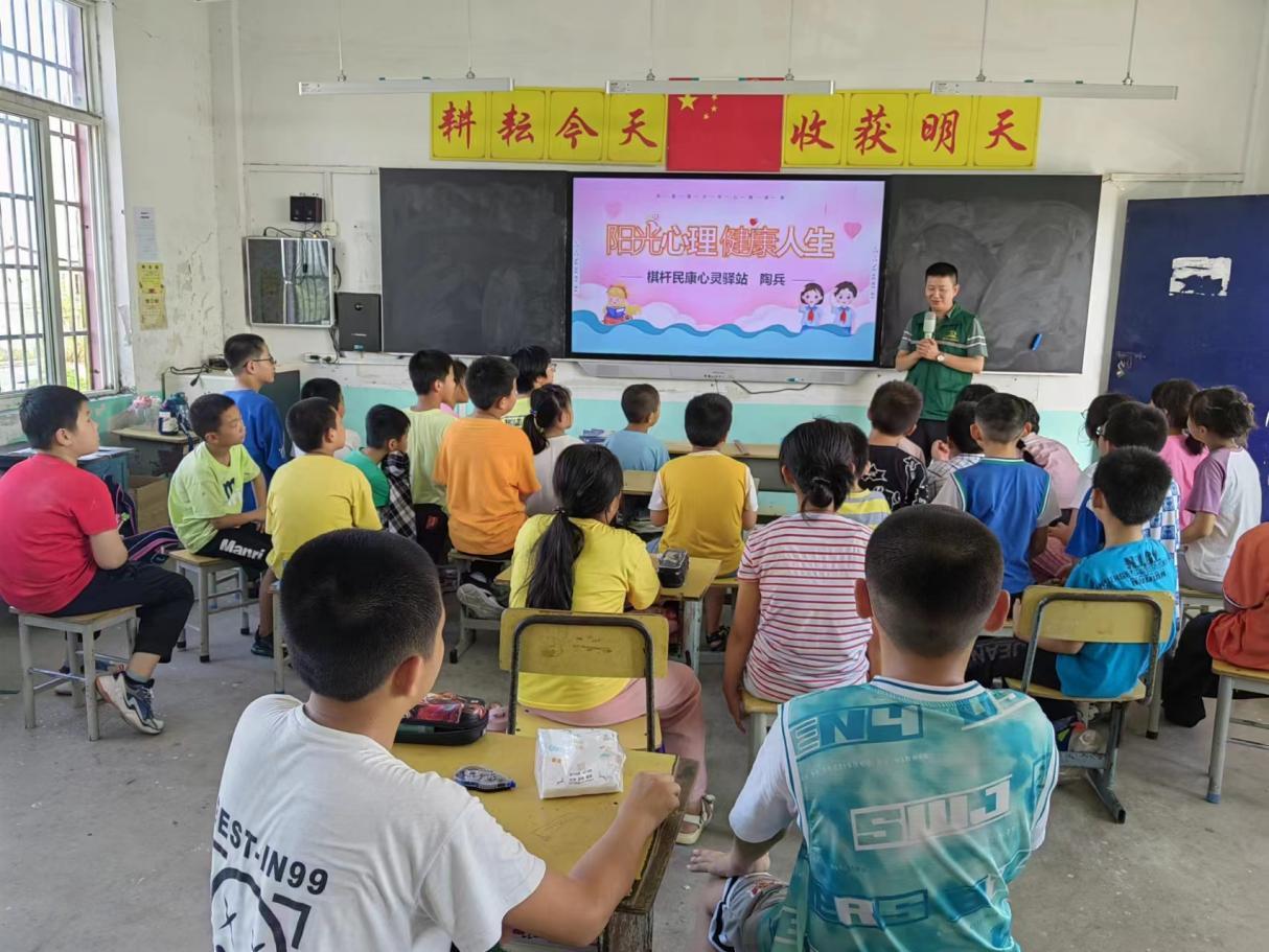 2023年9月18日上午,由大观区民政局建设的棋杆民康心灵驿站在安庆市精神卫生中心的支持下,深入偏远农村海口镇引河小学,为孩子们开展了一场别开生面的心理健康知识讲座。讲座主要内容包括心理健康的定义与重要性,小学生常见心理健康问题以及调节情绪的方法。本次活动旨在帮助农村小学生提升其心理素质,引导青少年认识心理健康,了解心理健康,进而缓解青少年紧张的情绪心理,增强他们应对困难和挫折的能力,培养他们积极阳光的心理状态,为小学生们的心理健康奠定扎实的基础。