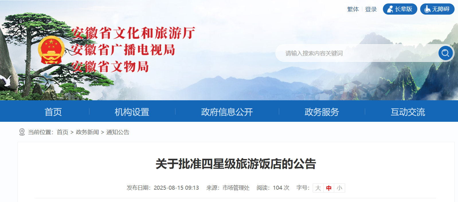 根据《旅游饭店星级的划分与评定》(GB/T14308-2023)国家标准和相关实施工作规程,经安徽省旅游星级饭店评定委员会研究决定,批准池州市东至明发国际大酒店为四星级旅游饭店,标牌编号:3440171。