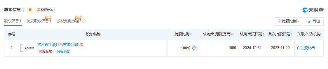 天眼查信息显示,淮南杭百能源有限公司,成立于2023年,位于安徽省淮南市,是一家以从事燃气生产和供应业为主的企业,由杭州百江液化气有限公司全资控股。