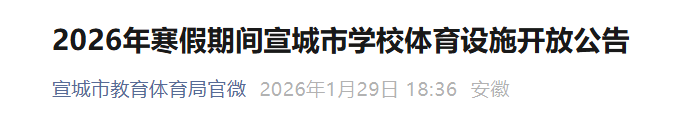 近日,宣城市教育体育局发布2026年寒假期间全市学校体育设施开放公告。