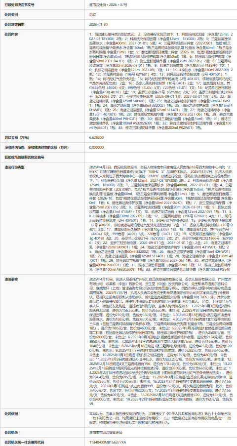 近日,据“信用安徽”公开披露行政处罚信息,因销售假冒侵权商品,淮南兴辉莱商贸有限公司被处以罚款6.6282万元。行政处罚决定书文号是淮市监处罚﹝2026﹞37号。