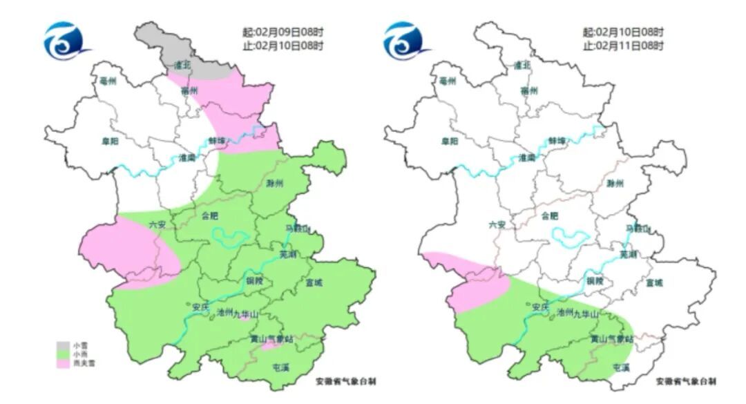 降水预报:9日~10日我省有弱雨雪天气,其中淮河以北东北部和大别山区有雨夹雪或小雪。13日~17日我省多降水过程。其余时段全省以多云到晴天气为主。