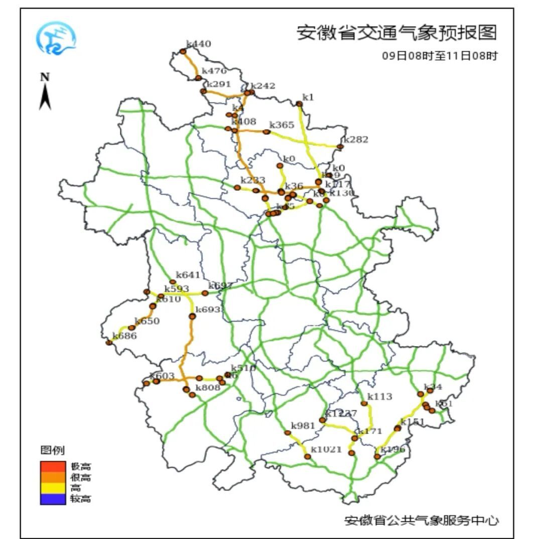 来源:安徽省公共气象服务中心、安徽公安交警在线