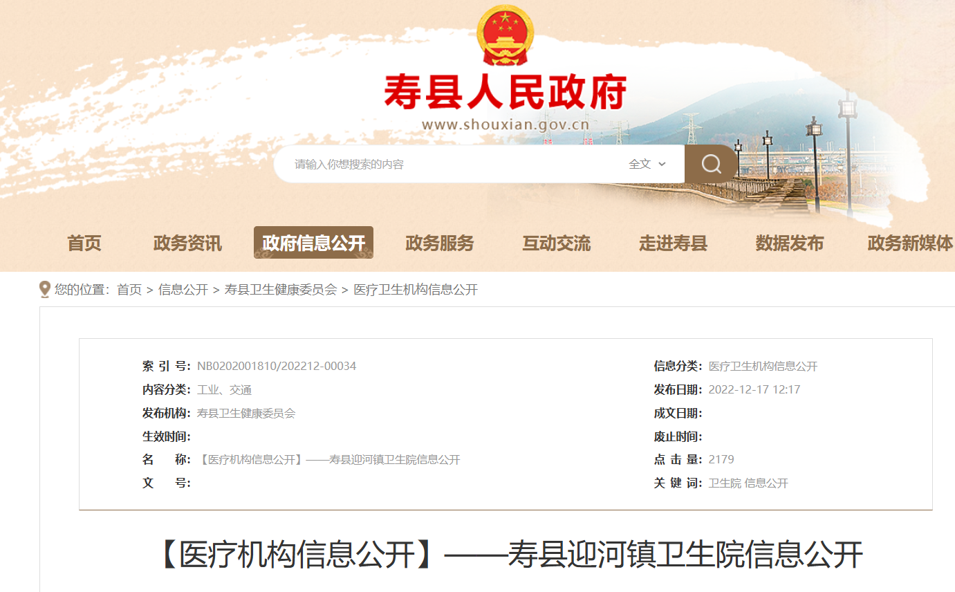 寿县人民政府信息显示,寿县迎河镇中心卫生院始建于1954年,1995年被六安地区行署卫生局评为一级甲等医院。2022年12月被淮南市卫生健康委员会授予二级综合医院。全院占地面积 1779.36平方米,业务用房总面积10577平方米。是政府和卫生主管部门批准的医疗保险定点单位,是承载基本公卫和基本医疗的集体非盈利的公立医院。