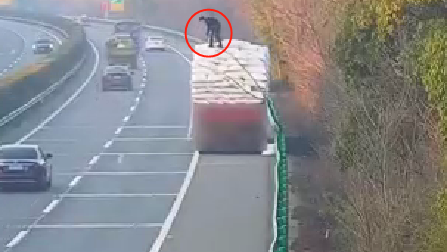 近日,芜湖交警高速一大队在视频巡检时发现,芜合高速宣城往芜湖方向10km+600m处,一辆货车停靠在应急车道,驾驶员正站在车顶捆扎货物。