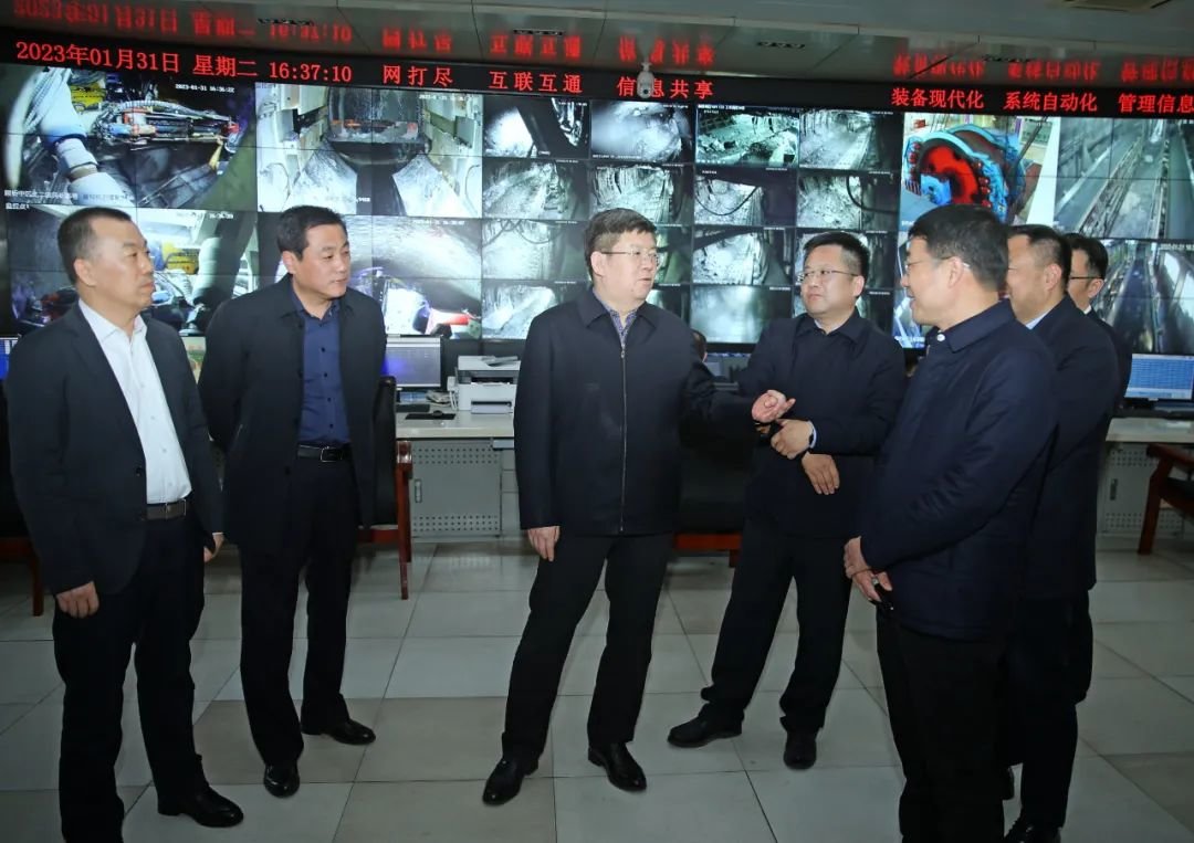 1月31日下午,市委书记任泽锋在顾桥煤矿,走进矿井生产调度指挥中心,观看监控视频,听取电煤保供、节后复工复产和生产经营情况汇报。