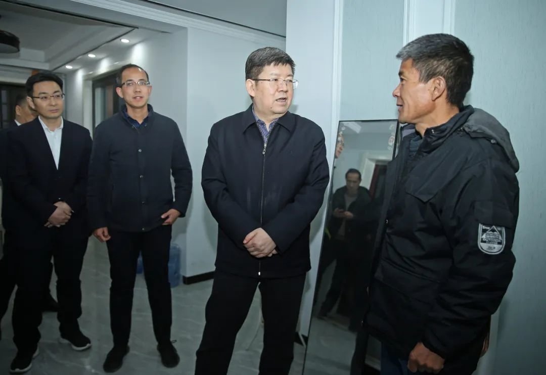 1月31日下午,市委书记任泽锋在关店安置区,听取沉陷区搬迁安置工作汇报,并入户走访安置群众,了解搬迁群众生产生活情况。