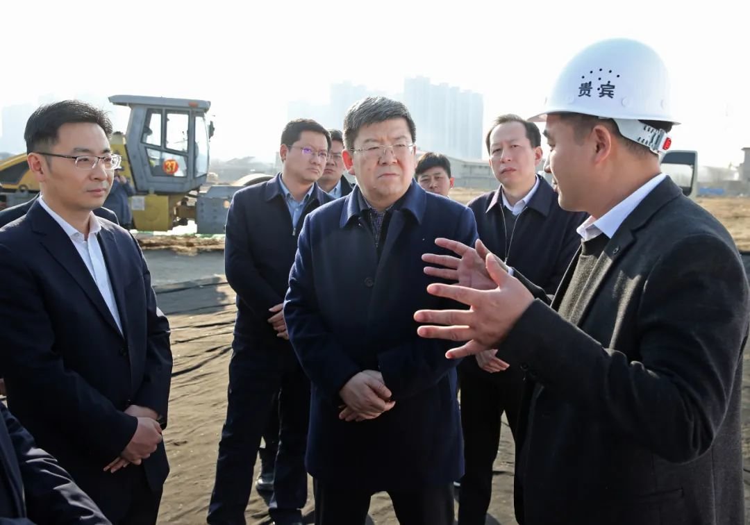 1月31日下午,市委书记任泽锋在国晟(凤台)异质结双碳产业园项目处,现场察看项目施工情况。