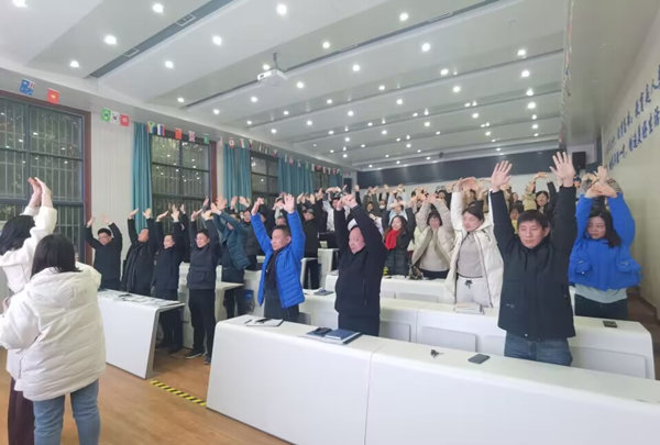 讲座中,周亚男以理论与实践相结合的方式进行授课,引导大家正确认识压力,亲身示范和带领老师们做放松操,让老师们进一步了解有效放松、调节压力的方法,主动调整情绪,积极自我减压。她结合学校工作实际,运用生动语言,把工作与生活有机融合,语气温柔、娓娓道来,语言风趣、充满正能量,引导大家正确调整工作、生活心态,体验职业中的幸福感。
