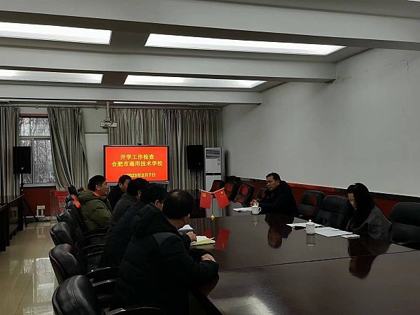 2月7日下午,肥东县教育体育局职成办副主任夏庆明、张晓梅代表县教体局来合肥市通用技术学校督查开学工作,学校党委副书记吴吉仙、纪委书记赵伟、党委委员副校长王伟、工会主席任远省、党政办主任唐自力等领导热情迎接督查组一行。