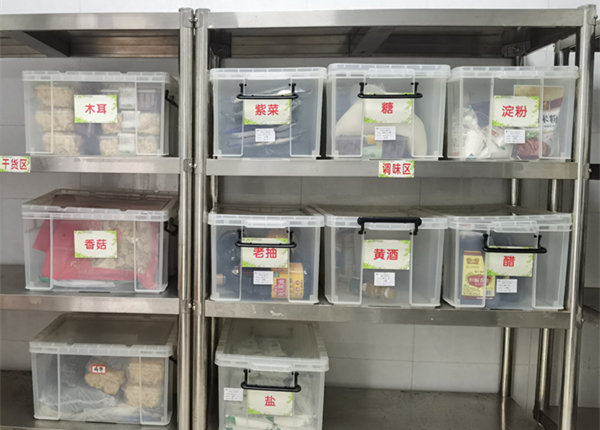 食堂分管负责人深入食堂查看各项操作流程是否规范等,比如蔬菜、禽肉等有无在规定地方清洗、切配;是否严格按照流程进行餐具消毒;留样食品是否按照品种存放在密闭专用的容器内,不低于125克,在冷藏条件下存放48小时以上,并做好记录等。
