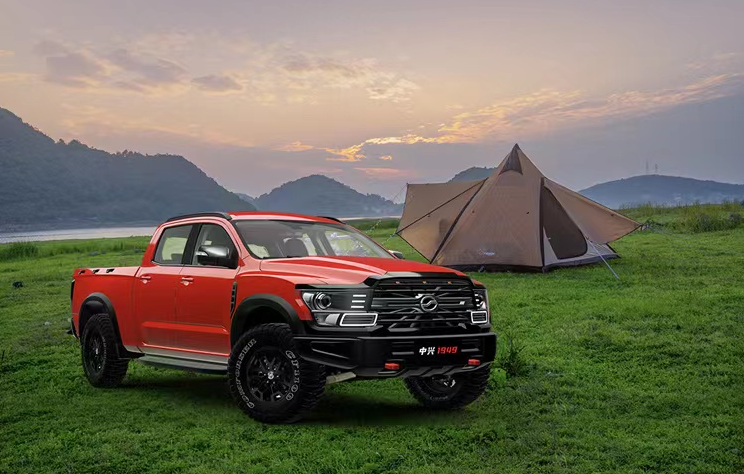 1949全尺寸皮卡现有2.3T柴油手动挡和2.0T汽油自动挡两种动力组合,而集“最高颜值、最强动力、最好底盘”于一身的柴油自动挡车型,将马上进入交付阶段。这款产品作为国产皮卡外观天花板,颜值自不必说,值得一提的是其美式越野底盘:1949能爬60度陡坡、涉水可深达800mm,不惧高原、山路、高温等一切艰难险路,相比同类产品只是抬高车身,强度降低,重心不稳,离地间隙没有变化。中兴1949底盘后悬针对不同用车场景分为两种设计结构,乘用版后悬采用多连杆结构,在提升车身韧性和轻量化的同时提升操控性和舒适性,越野时遇到泥泞、雨雪等路况时驾驶者可以更加游刃有余;商用版车型后悬采用钢板弹簧结构,在舒适的同时也拥有强悍的载货能力。中兴1949柴/汽油动力综合性能突出,柴油动力采用雷诺/日产开发的2.3T动力低扭性能出色,起步转速1500便可输出最大扭矩,直到2750转速区间均可保持输出,对于重载、脱困等需要爆发力的场景尤为实用,相比同类产品主要采用的2.0T乘用动力具有明显优势。汽油动力搭载2.0 GDI汽油发动机,最大扭矩360Nm,缸内直喷,性能优于同类产品的2.7L自吸发动机。