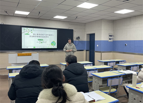 为进一步提高新课标学习成效,指导学科教师树立新理念,掌握新方法,2月23日下午,合肥新站高新区初中道德与法治学科新课标全员学习专题解读研讨会在合肥一六八新店花园学校初中部录播教室举行。本次活动研修主题是核心素养指引下的教学情境选择与应用。新站区道德与法治学科教研员范从成、合肥一六八新店花园学校教育集团校长焦长俊、区内各初中学校道德与法治学科教师代表参加了本次活动。活动分三个环节:课例观摩、课例研讨、专题讲座,本次活动由区道德与法治学科教研员范从成主持。
