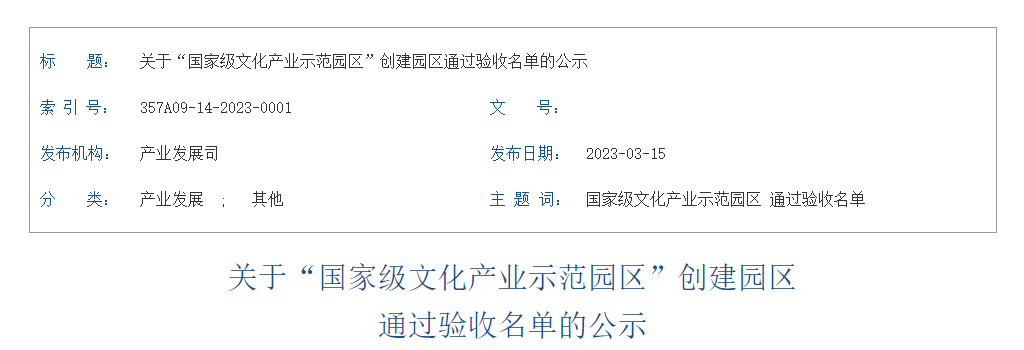3月15日,文化和旅游部网站发布《关于“国家级文化产业示范园区”创建园区通过验收名单的公示》,拟确定15家园区通过创建验收。其中,安徽省合肥包河创意文化产业园上榜。