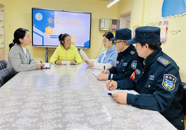 为进一步加强幼儿园安保防范工作,安全员胡彤彤老师组织安保人员开展安全工作会议。在这次安保会上,胡彤彤解读了《校园专职保安考核方案》,并结合幼儿园实际情况对保安提出了具体要求。明确保安职责,按规定穿制服上岗,必须手持盾牌及相关器械值班值守,做好交接班;实行全封闭管理、加强每日巡查,不定时巡逻检查。