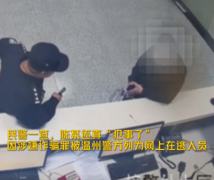 经查,该陈姓男子还真犯了事,因涉嫌诈骗被温州警方网上追逃。