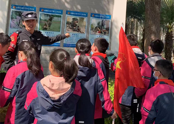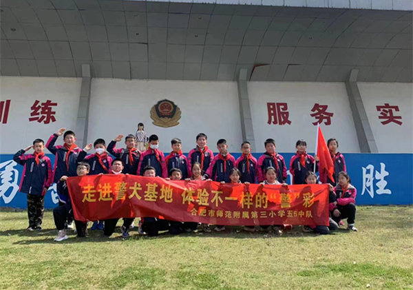 在许多涉及缉私、缉毒、追捕逃犯的警匪片甚至新闻画面中,都会出现警犬的身影,它们兼具机敏灵巧和凶猛勇敢,让犯罪分子无处藏身。而现实中的警犬是如何“练成”的,它们又有哪些特殊技能呢?带着疑问,4月2日上午,合肥市师范附属第三小学五5中队的队员们一起走进神秘的“警犬基地”参观。
