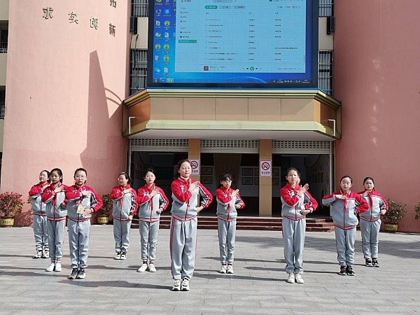 曲阳路校区操场,在老师的带领下2700余名少先队员踔厉奋发,列队肃立。在庄严的升旗仪式后,“国旗下讲话”活动依次展开。此次“国旗下讲话”的主题为《阅读点亮智慧 书香润泽心灵》,少先队员代表从阅读可以明智,阅读可以知礼,阅读促进成长,阅读可以带来乐趣和进步等入题,深入介绍了多读书、读好书在促进学生成长进步等方面所发挥的重大作用,所产生的深远影响,并号召全体少先队员积极投身到读书活动中去,让图书成为生活的必需品,让读书成为每位学生日常生活不可或缺的一部分,用每日读书为自己的健康成长持续“加分”。由少先队员代表带来的韵律舞蹈《君子谣》把“国旗下讲话”活动推向高潮,伴着四字成词,八字成句,朗朗上口轻快的旋律,表演者用舞蹈传播中国崇仁尚礼的传统文化,自强不息的民族精神。