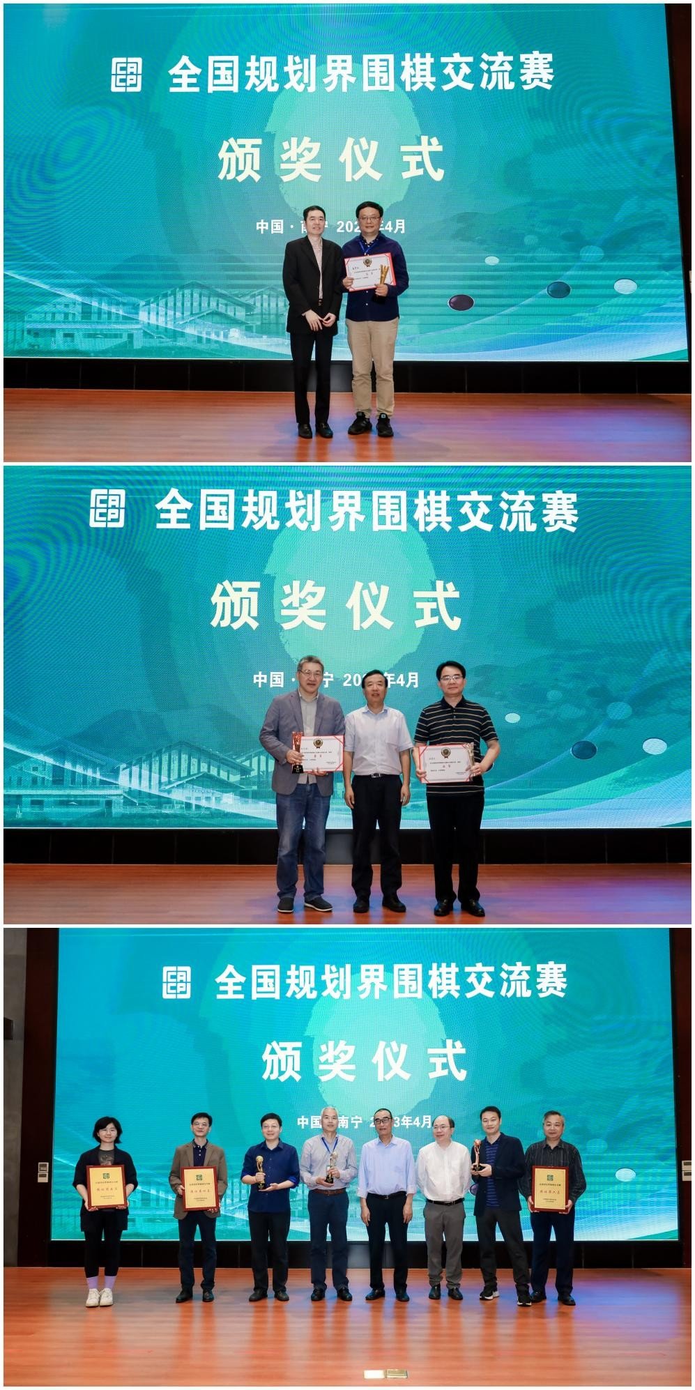 本次比赛设个人赛、团体赛两个项目,经过5轮的角逐,个人赛及团体赛名次揭晓。来自中国农业大学的奚雪松教授以全胜成绩夺得个人赛第一名,陆景宇、赵友谊分获第二、第三名;获得团体赛前三名的是福建工程学院建筑与城乡规划学院、广西自然资源厅、广州规划协会。