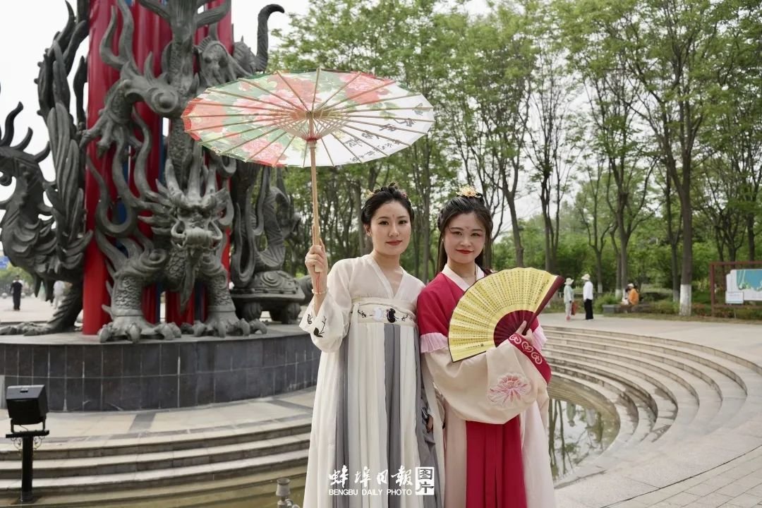 “前两天,在市文体旅局有关负责人的协调组织下,我们在中国南北分界线雕塑附近设置一个汉服换装点,以便于更多的游客和市民在此体验当‘冥夜’和‘桑酒’的感觉,现在已经正式对外开放。”晓露汉服文化馆馆长刘晓露告诉记者,我们希望能让各地游客感受到蚌埠人好客的热情,将服装租赁费用从150元一套降为60元一套。