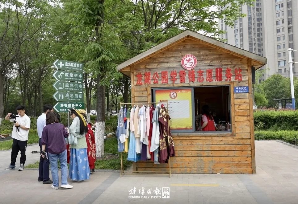 不远处的龙子湖公园学雷锋志愿站