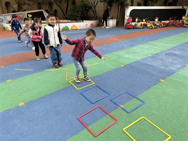 4月17日,合肥市直属机关幼儿园开展了《欢乐跳跳跳》的主题游戏活动。关于怎么跳,他们都有着自己的想法。“跳房子”是中国民间传统游戏之一,材料简单,玩法简单,充满乐趣与挑战,鼓励并引导幼儿去实践、去探索。于是,关于“跳房子”的游戏就开始了……