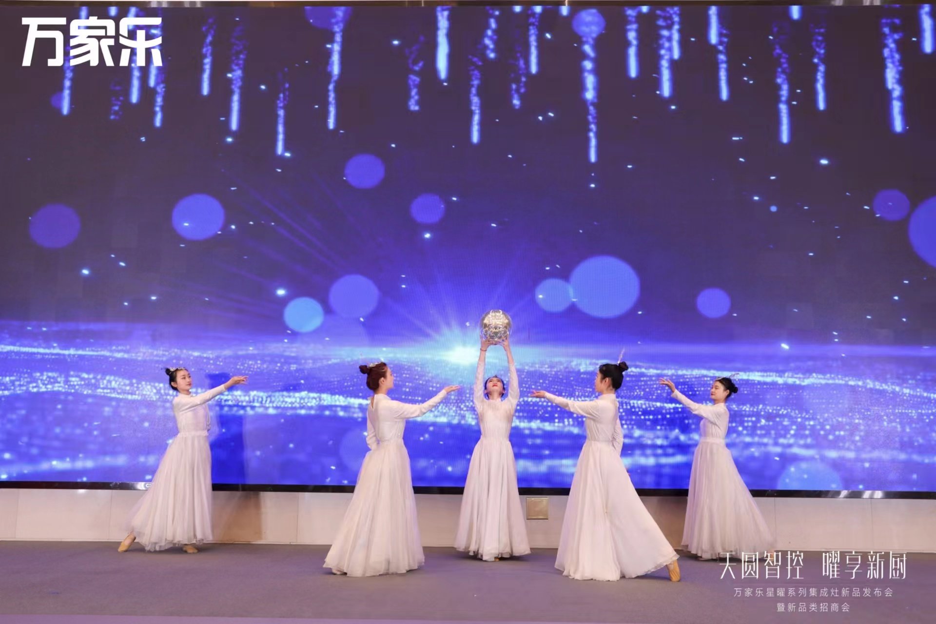 会议开场,舞者带来了激情热烈的开场舞。在一百多名省内经销商、媒体的共同见证下,万家乐星曜系列集成灶发布会暨新品类招商会正式拉开帷幕。