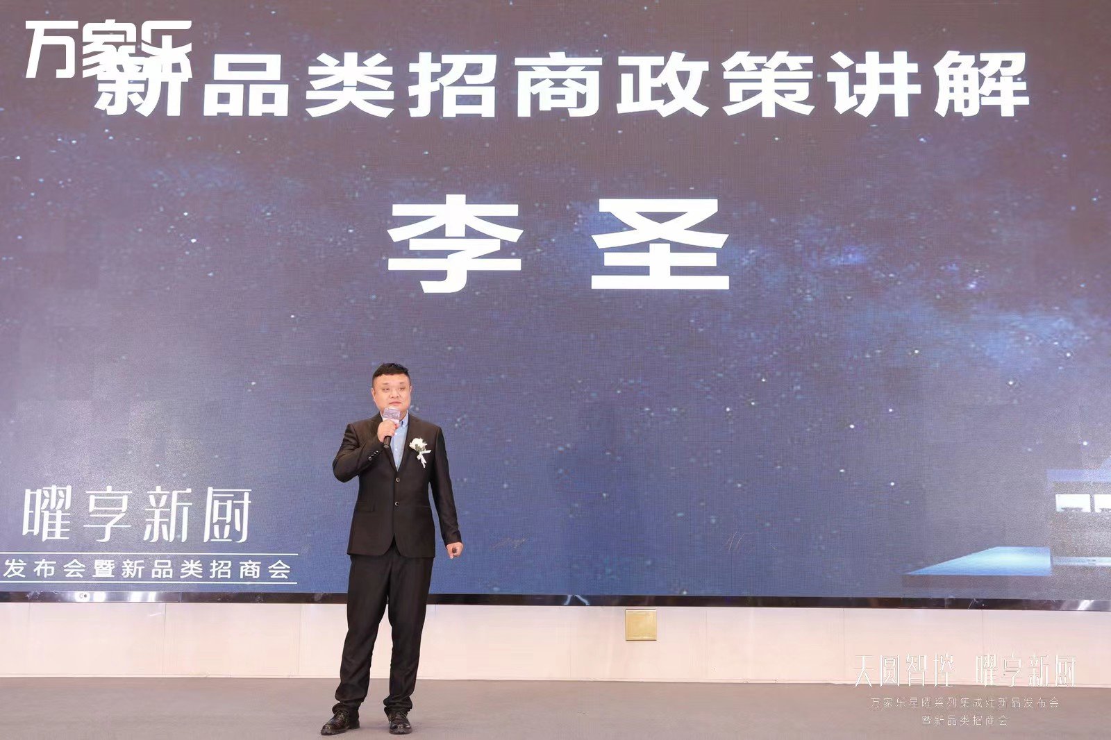 新品揭幕后,万家乐华东大区新品类运营总监李圣针对新品类的招商政策做了详细的讲解。
