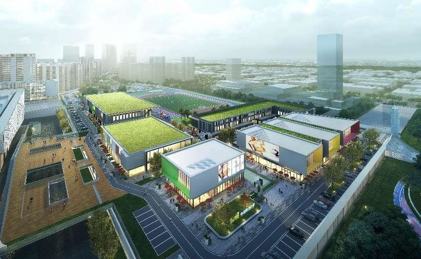奥体公园建有约5万平方米的特色商业服务空间,定位为体教融合服务、家庭亲子娱乐、休闲健康生活服务功能,与体育馆、体育公园形成高水平竞赛表演、主题商服空间、健康休闲为一体的核心生态聚集区。目前体育馆、全民健身中心及配套设施已完成封顶,预计2023年底建成。