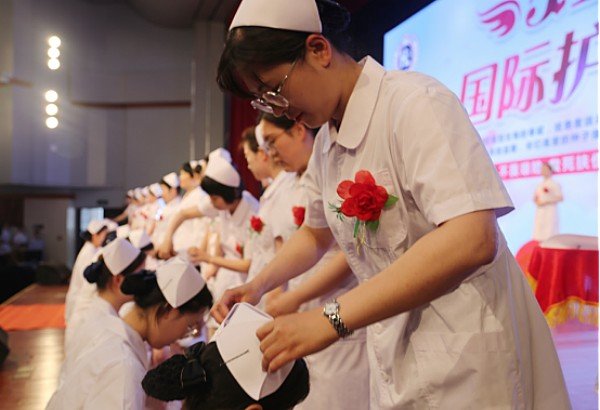 为纪念“5.12”国际护士节,弘扬南丁格尔精神,激励广大护理师生在新时代、新征程中奋发有为,5月4日下午,由安徽医学高等专科学校护理学院主办的“建功新时代 奋进正当时——纪念‘5.12’国际护士节暨护士授帽仪式”在芙蓉路校区大礼堂拉开帷幕。校党委书记董亚杰,党委副书记、校长郑为超,校党委副书记王劲松,校党委委员、副校长严继贵出席会议。安医大一附院护理部、安医大一附院北区护理部、合肥京东方医院护理部、安徽省第二人民医院护理部负责人及学校有关单位主要负责人、护理学院主要负责人参加活动。