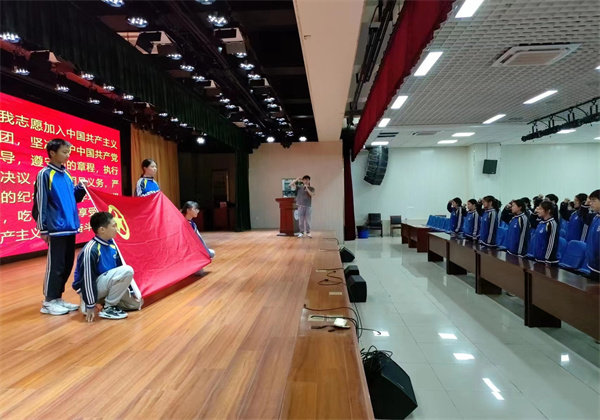 活动在雄壮的国歌声中拉开帷幕,团员同学们齐唱团歌、重温入团誓词,用铿锵的誓言表达了作为一名共青团员的责任和担当,他们表示要学习先烈们不怕吃苦、勇于奉献的精神,珍惜现在的和平年代,继承革命者的遗志,努力学习,早日成为社会主义的建设者和接班人。