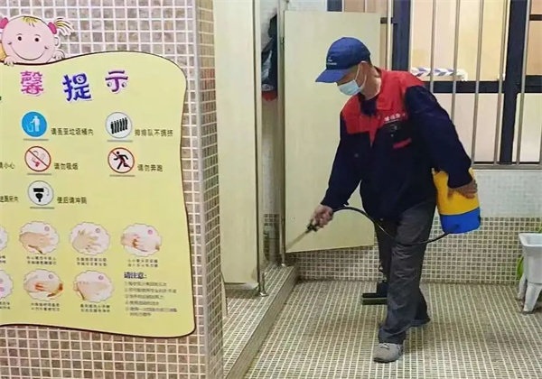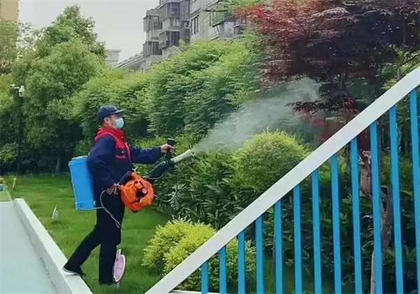 工作人员对操场、户外绿化、排水管、下水道等地方的卫生死角进行消毒,做到全方位消杀,扼杀蚊虫滋生的温床,让“四害”无藏身之处。