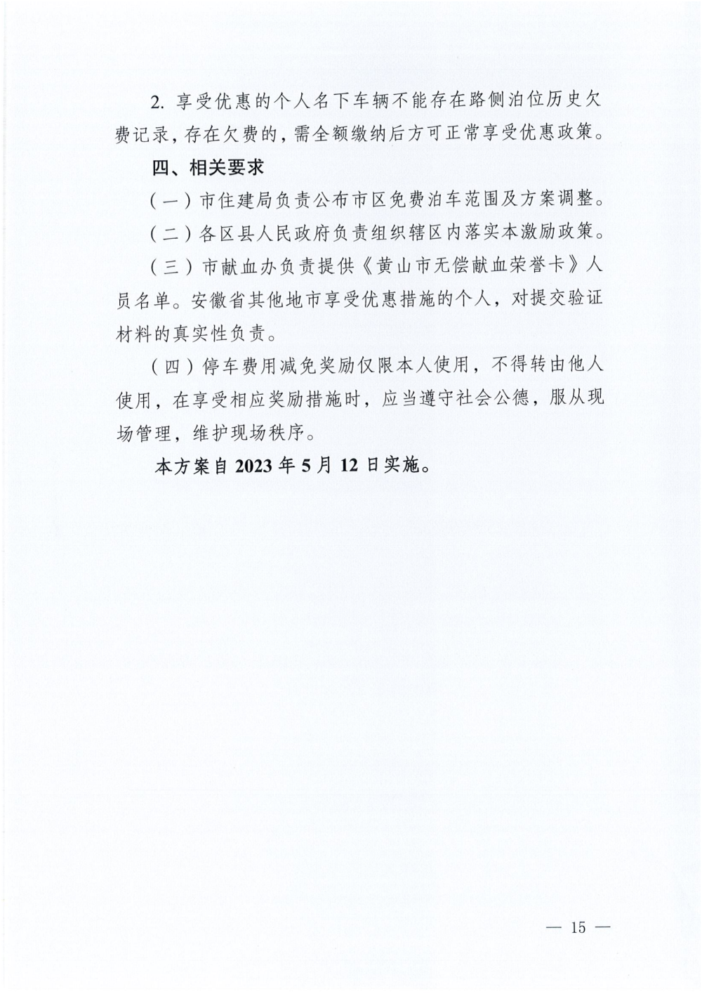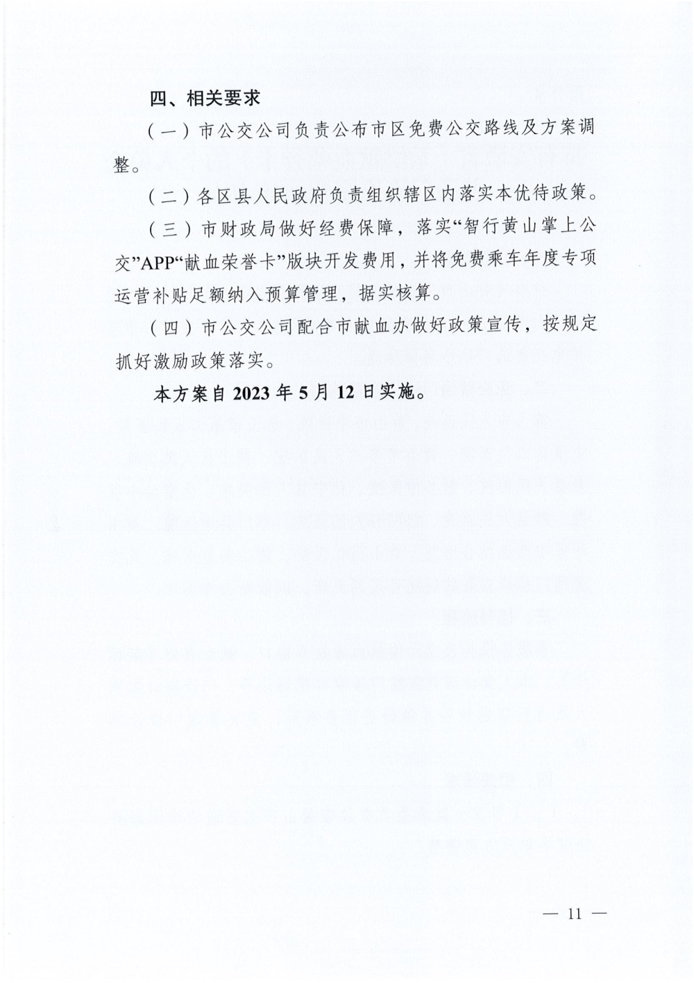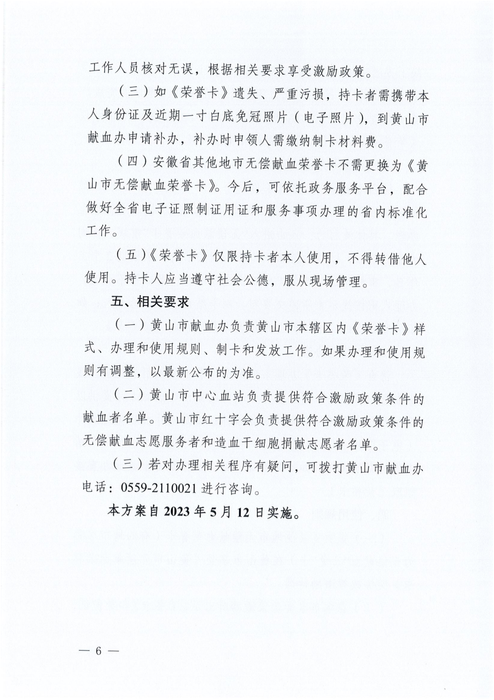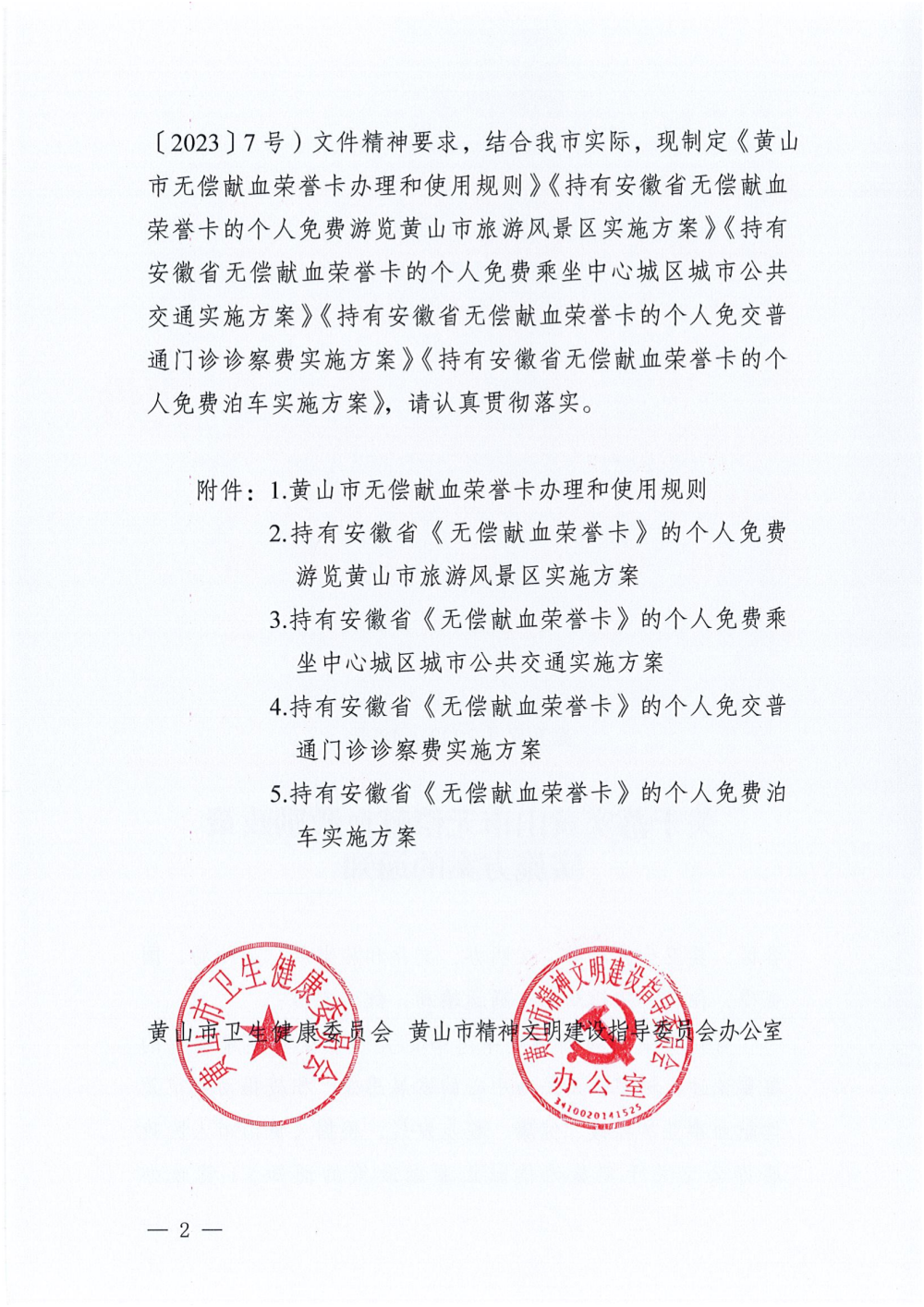 《关于落实黄山市无偿献血激励政策实施方案的通知》