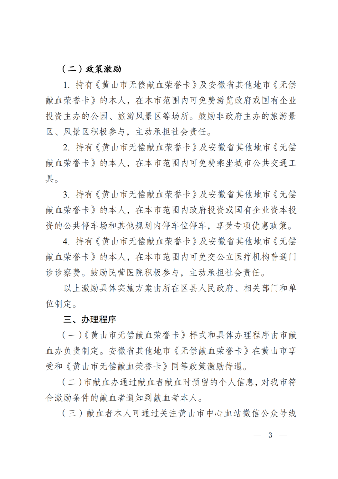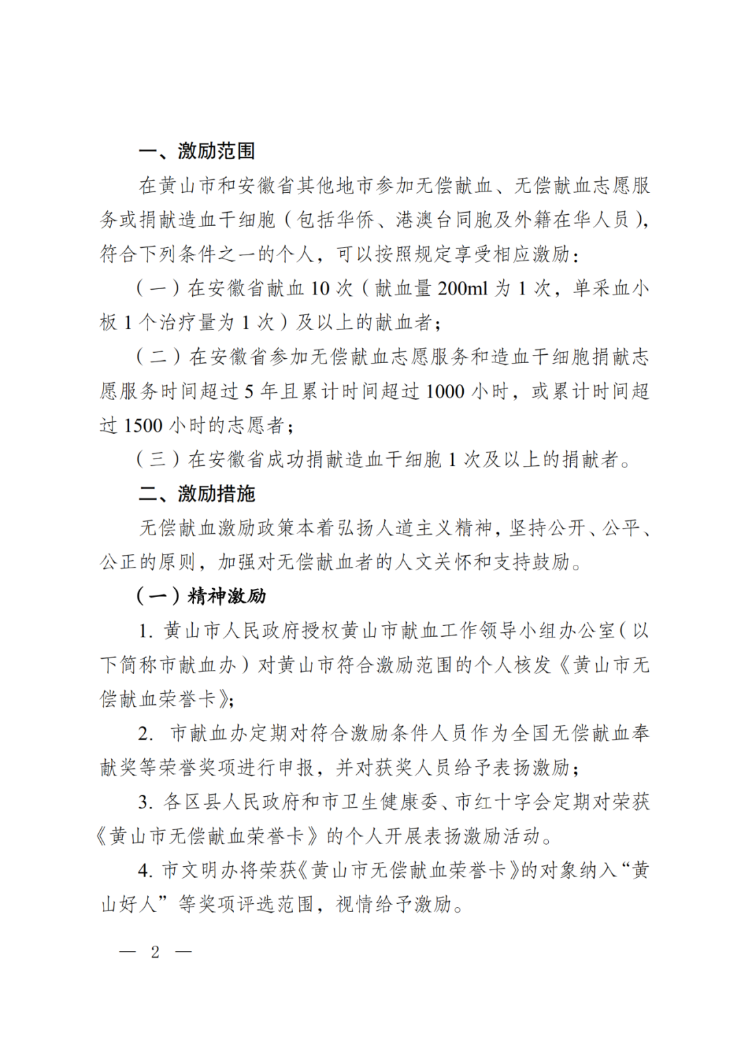 《黄山市无偿献血激励政策》