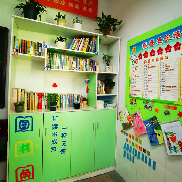 老师和同学们积极准备、大胆设计、精心布置,一个个精巧别致、充满书香韵味的图书角完美建成,并成为各班亮丽的一道风景线。每个班的图书角设计各具特色,不但凝聚师生们无穷的智慧,也彰显着孩子们阅读的足迹。各类图书整齐地排列在干净的书柜上,各种小巧别致的“图书角标识”“图书借阅制度”和醒目的有关读书的名言标语让人感受到浓浓的书香气息,生机勃勃的小绿植错落有致,点缀其间。图书角俨然已成了大家最喜欢的教室一角。