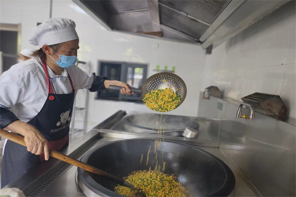 一把菜刀,一块砧板,一条围裙,一方天地,穿梭于厨房,不停忙碌,这就是幼儿园厨房人员的日常工作。本次厨艺技能要求厨师们用鸡蛋、牛肉、胡萝卜、玉米粒、火腿肠等材料制作出美味的五彩炒饭,把幼儿营养膳食管理工作做得更好。经过一番精心烹制,色香味形俱全的美味佳肴新鲜出炉啦!