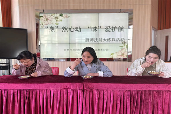 爱,在健康中成长;爱,在点滴中呵护;爱,在味蕾上绽放;爱,在孩子们每一餐饭菜里。为加强幼儿园膳食管理,提高幼儿的膳食质量,保证幼儿健康饮食,进一步激发食堂人员的动手能力、创作能力,同时也为了使幼儿园的饮食文化更丰富、营养更均衡、菜品多元化,合肥市双岗幼儿园教育集团源水分园于5月12日开展了厨师专业技能大练兵活动。