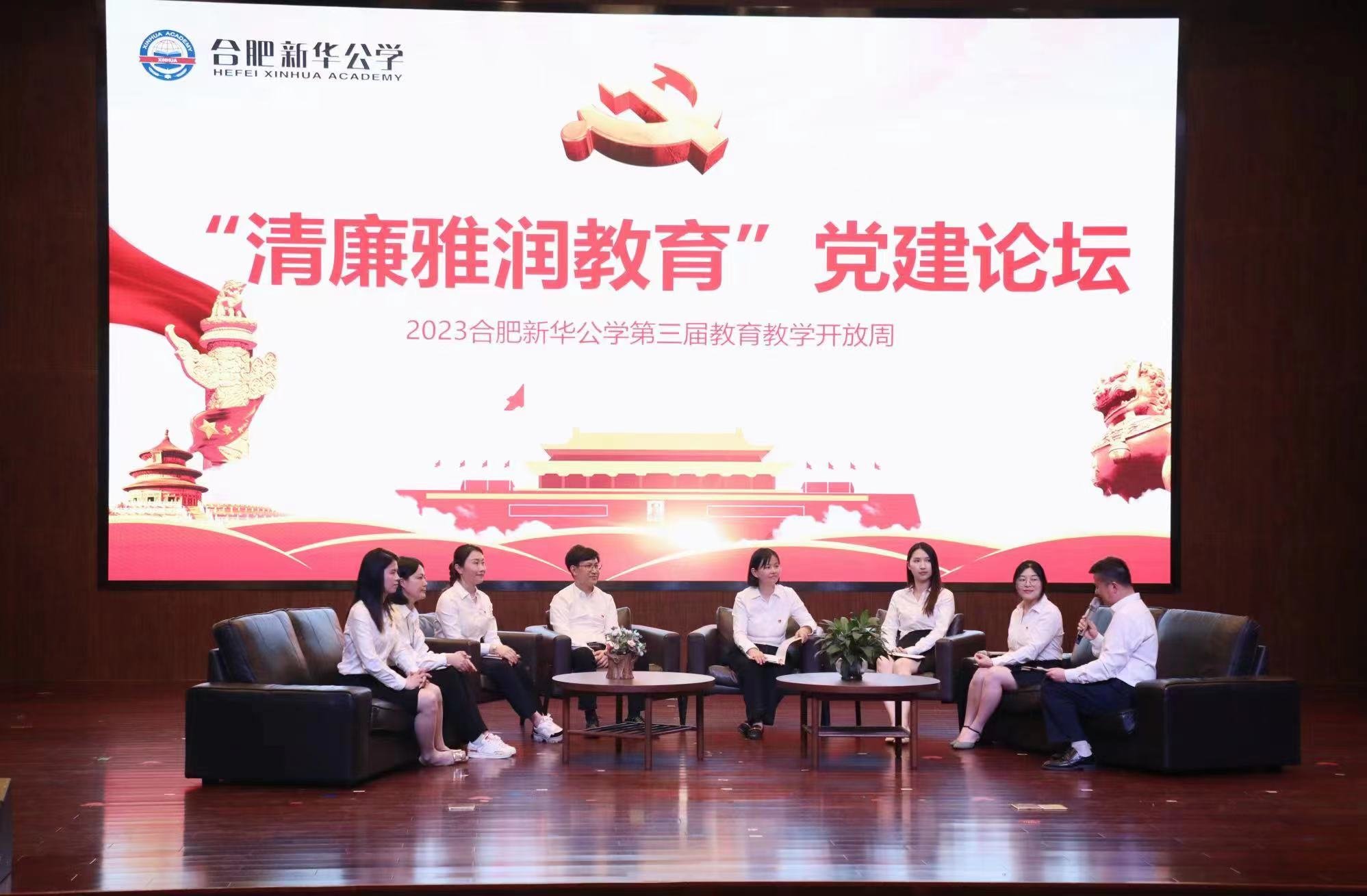 当天上午,8位党员教师代表围坐一堂、巅峰论道,围绕“雅育美德、廉润心田”主题,聚焦清廉雅润教育,畅谈心得体会,共商对策措施。此外,新华公学党支部全体党员、部分没课的教师亲临现场,数千人次通过线上直播的方式观看此次活动。