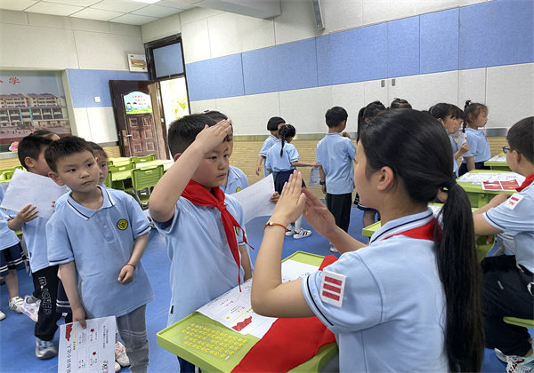 “我有星星的梦想,你有火炬的温暖,星星火炬就是代代相传的迷人画卷……”“加入少先队要达到‘六知、六会、一做’的标准。”队前闯关游戏加深了预备队员们对少先队组织的认识,增强了他们内心的荣誉感和神圣感。相信预备队员们在将来加入少先队这个大家庭后,会为红领巾增添新的光彩!(文图/卜华梅 杨波)