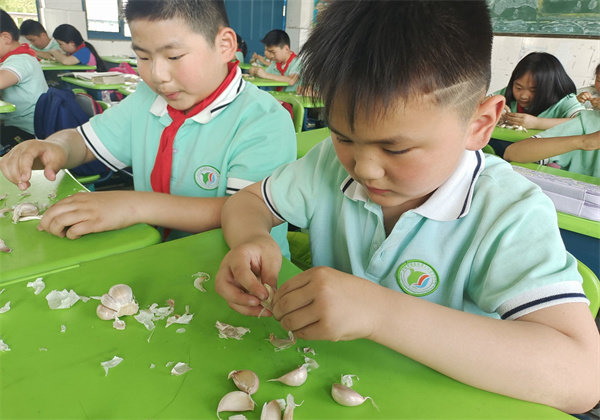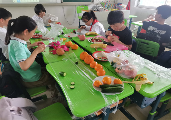 学校结合各年级的特点,竞赛按年级、按主题进行。一年级是整理书包大赛,二年级是系鞋带大赛,三年级是剥大蒜大赛,四年级的叠衣服大赛,五年级的水果拼盘大赛,六年级的缝扣子大赛。