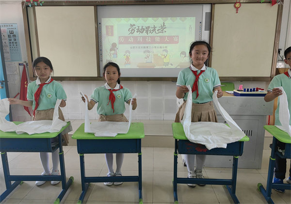 为牢固树立劳动最光荣、劳动最崇高、劳动最伟大、劳动最美丽的观念,合肥市安庆路第三小学大杨分校,将劳动课程与实践活动相结合,开展以“劳动促成长 实践创幸福”为主题的劳动周系列活动。5月15日下午,学校各班在教室里举行了劳动技能大赛。