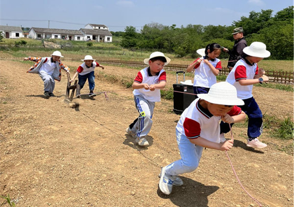 “春推木犁夏挥锄,秋舞镰刀冬抡镐。”劳动无比快乐,农耕充满趣味,孩子们体验用鸡公车运粮,进行百米插秧赛,铧犁翻沃土,通过趣味性的农耕竞技,感受农耕劳作的场景,体会农民农作的辛苦,并且学习到农具使用的知识、掌握农耕劳动技能,将吃苦耐劳的农耕精神薪火相传。在竞技中学会团队合作、互助和拼搏。
