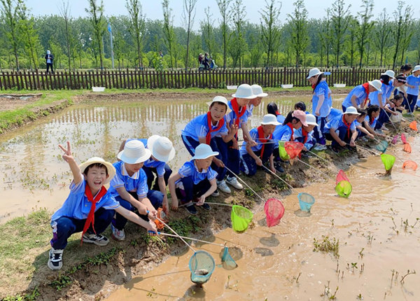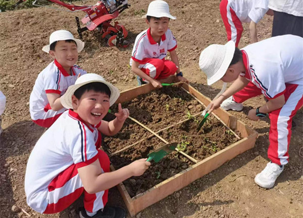 一上午的活动充实辛苦,但孩子们的热情丝毫不减。午休时,孩子们快乐地分享带来的美食,在草地上、在田野间兴致勃勃地讨论。简单地休息后,在老师的指导下,孩子们分组、取名、分工,亲自动手丈量菜箱尺寸、做好定位、拉线分格、配土装土、挖沟浇水等,精心料理自己的“一米菜园”。随后,孩子们在水田里欢快地捉鱼捞虾,与鱼儿小虾亲密接触,尽情享受田野之趣。以劳树德,以劳增智,以劳强体,以劳益美,以劳创新,促进学生全面健康发展。