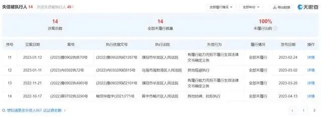 不止多个商票逾期,合肥建工集团还多次成为失信被执行人。天眼查显示,2023年以来,合肥建工集团有限公司新增被执行人信息14条。