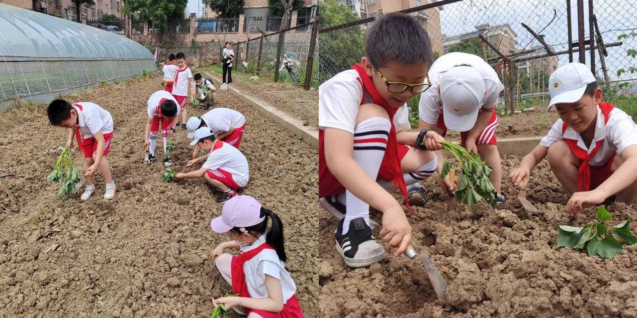 他们拿起铲子认真的忙着起隆、栽苗、浇水、封土,栽种,虽然动作有些笨拙,但都充满了干劲。经过大家的共同努力,山芋苗很快被种好。看着那一排排整齐的秧苗,大家脸上洋溢着喜悦的笑容。他们知道,从此刻起这些山芋秧苗将在他们的精心栽种下茁壮成长,同时也感受到“锄禾日当午、汗滴禾下土”的真谛。