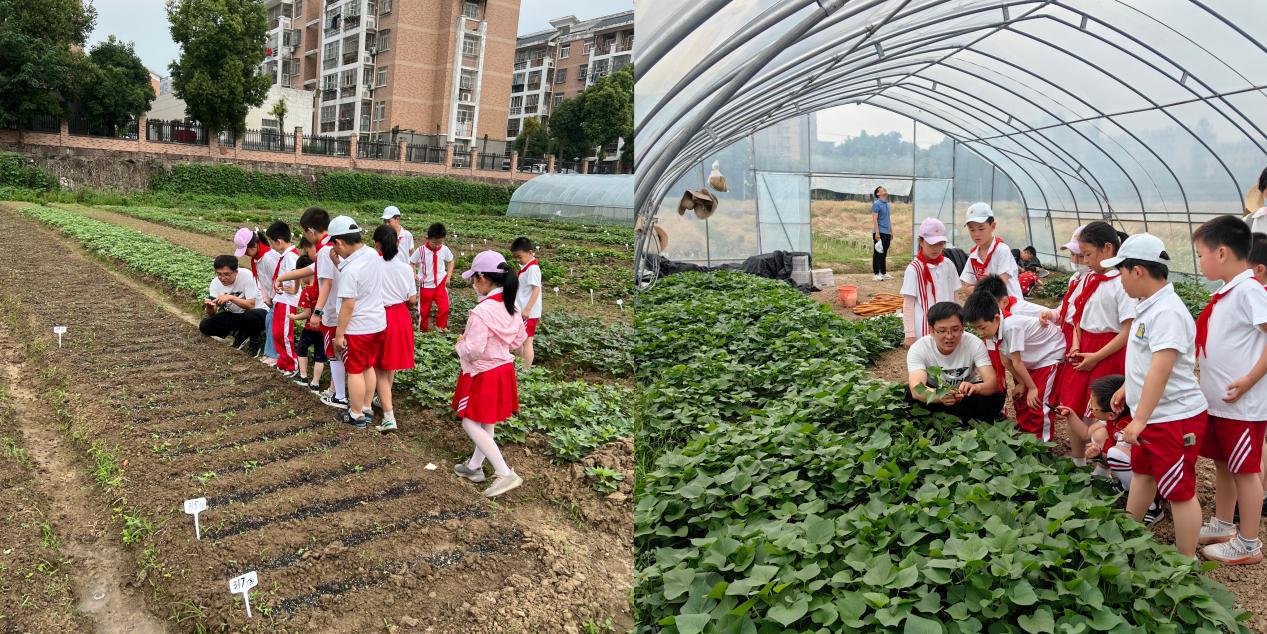 清晨,小队友们兴高采烈地来到安徽省农业科学院种植基地。大家先到田间和大棚里认识了小麦、油菜、花生和山芋等各种农作物。随后农科院的专家向孩子们讲解了山芋生长的环境,土壤、水分、光照和温度等因素以及山芋秧苗移栽的基本知识。最后在农科院专家的指导下,大家仔细观察并挑选符合要求的山芋苗,热火朝天地进行山芋秧苗移栽。