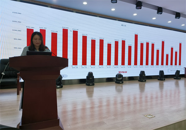会上,九年级年级部长洪立国老师对当前毕业班的工作进行了介绍,他从班级管理工作以及毕业班的教学工作两方面作了详细汇报,对毕业班后期的教学工作提出了一些行之有效的建议。校党委委员、教务处主任聂俊通过PPT呈现了近期毕业班教学质量抽测的数据对比,对各班级、各学科的抽测成绩进行了详细质量分析,并提出了改进措施。