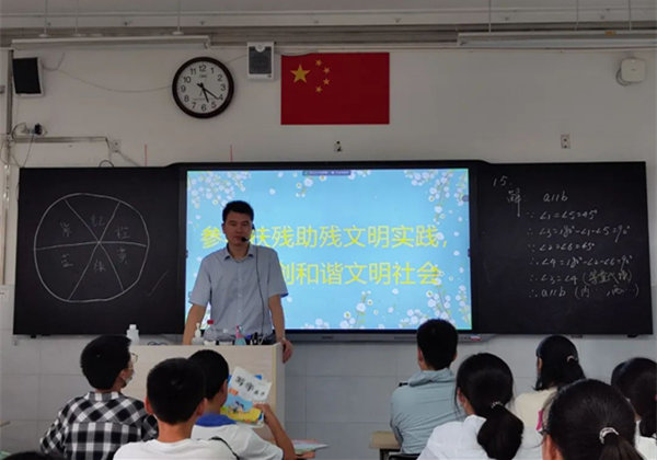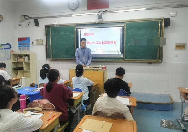 全体教师共同努力,奉献爱心、尽己所能,尊重孩子个性差异、因材施教,为残疾儿童的明天尽一份绵薄之力,献一份关爱之心。召开以关心关爱残疾人为主题班会,鼓励学生利用周末等课余时间前往残疾人福利机构等进行力所能及的帮扶,践行“大爱于心 致真于行”的校训。