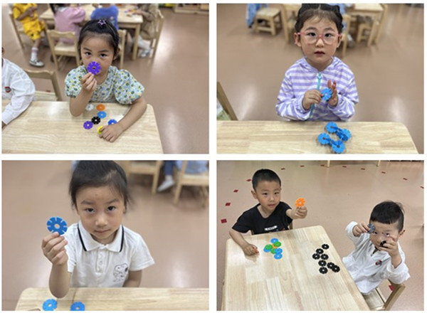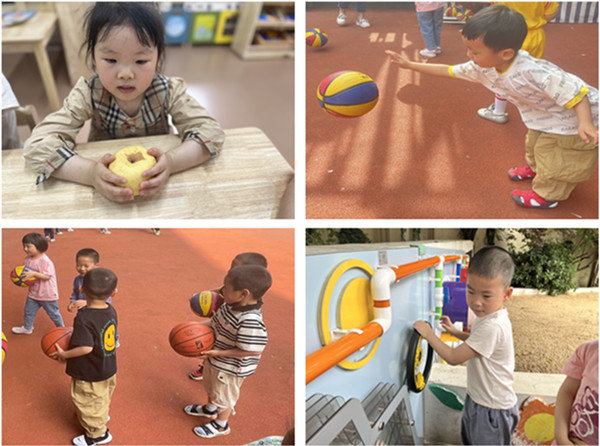 通过对圆的发现,小朋友们探索原来在我们的身边还有很多与圆有关的游戏。